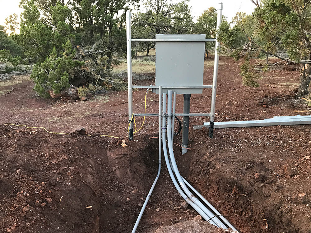 There was a forest fire burning on the edge of the Kaibab/Coconino National Forests about 20 miles from our place, and at times you could smell it in the air. Other than that, there wasn’t much going on to report. It was a quick trip to get the stuff in the trench that needed to go in, so that on our next trip we can have all the trenches closed up. While they’re at it, we’ll have Kevin and his crew tidy up the grading and get rid of all the excess piles of dirt.